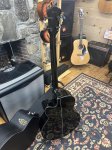 The Ibanez AEB10BBE-BLK is a 32-inch medium-scale acoustic-electric bass with a gloss black finish, featuring a spruce top and mahogany back/sides for a warm, resonant tone. It includes a Fishman® Sonic pickup and Ibanez AEQ-SST preamp with a built-in tuner for versatile, punchy amplified sound. The instrument is designed with a comfortable 22-fret rosewood fingerboard, cream body binding, and die-cast tuners.