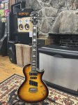 Used Epiphone Nighthawk Custom Reissue in 3-Color Sunburst, solid body electric guitar in great condition. This versatile model features a mahogany body with a flamed maple top, SlimTaper neck, and rosewood fingerboard with crown inlays. Equipped with a mini-humbucker, single-coil, and full-size humbucker, it offers a wide tonal range through a 5-way selector switch. A great choice for players seeking vintage vibe and modern flexibility in one stylish instrument.