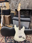 This 1993 Fender American Standard Stratocaster featured an alder body, a comfortable "C" shape maple neck, a 9.5" radius fretboard with medium jumbo frets, single-coil pickups in the neck and middle position with classic Strat tones, and a Seymour Duncan humbucker in the bridge. Also including a two-point tremolo, offering reliable performance and a great playing experience with modern features like headstock truss rod access. This example is a beauty with an aged white finish and its a fun player. Includes original hard shell case as pictured.