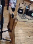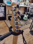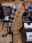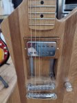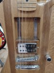 A locally made custom guitar with moveable pickups. There's a small chip but it doesn't affect the playability.