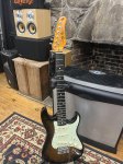Jay Turser 3/4 Stratocaster, scaled-down electric guitar, ideal for kids or smaller players, featuring classic Strat-style body basswood/alder, maple neck, rosewood fingerboard, three single-coil pickups with a 5-way switch for versatile tones, and a tremolo bridge, offering an affordable entry into electric guitar playing with standard Strat features.